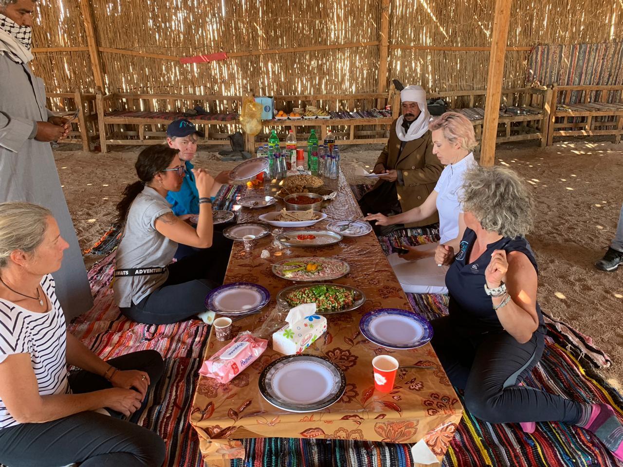 Dag 3:Deze ochtend stijg je op voor een volle dagtocht van ongeveer vijf uur paardrijden. ’s Morgens rijd je naar een bedoeïenenkamp. Het kamp is gesitueerd op een plek met adembenemend uitzicht. Hier genieten we van een typisch bedoeïenlunch voordat we weer te paard gaan. We rijden terug naar de stallen.