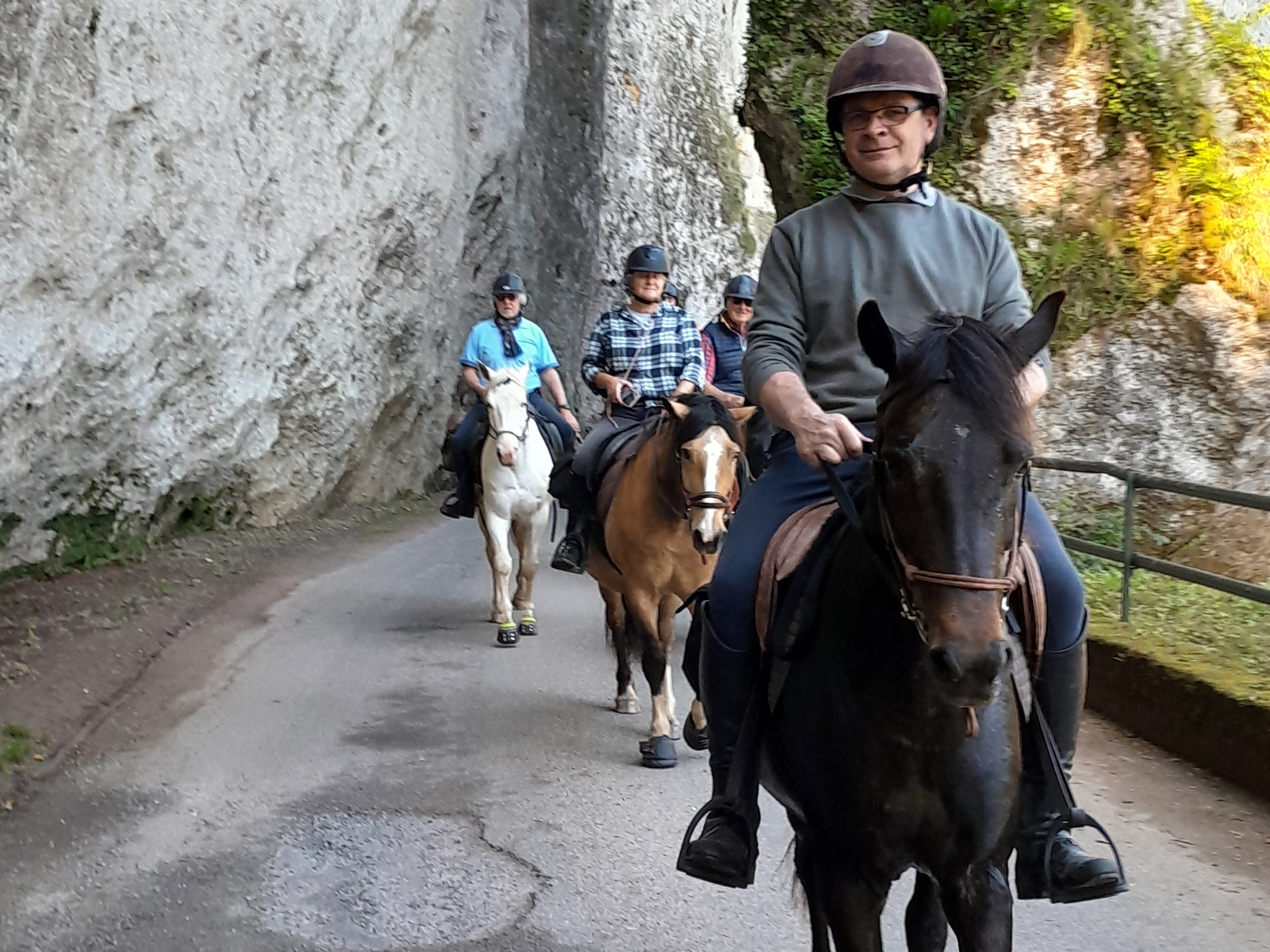 De groepjes waarin wordt gereden bestaan uit maximaal zeven personen. Neem je eigen cap mee; paardrijden met cap is verplicht. Het wordt aangeraden om je eigen cap mee te nemen.