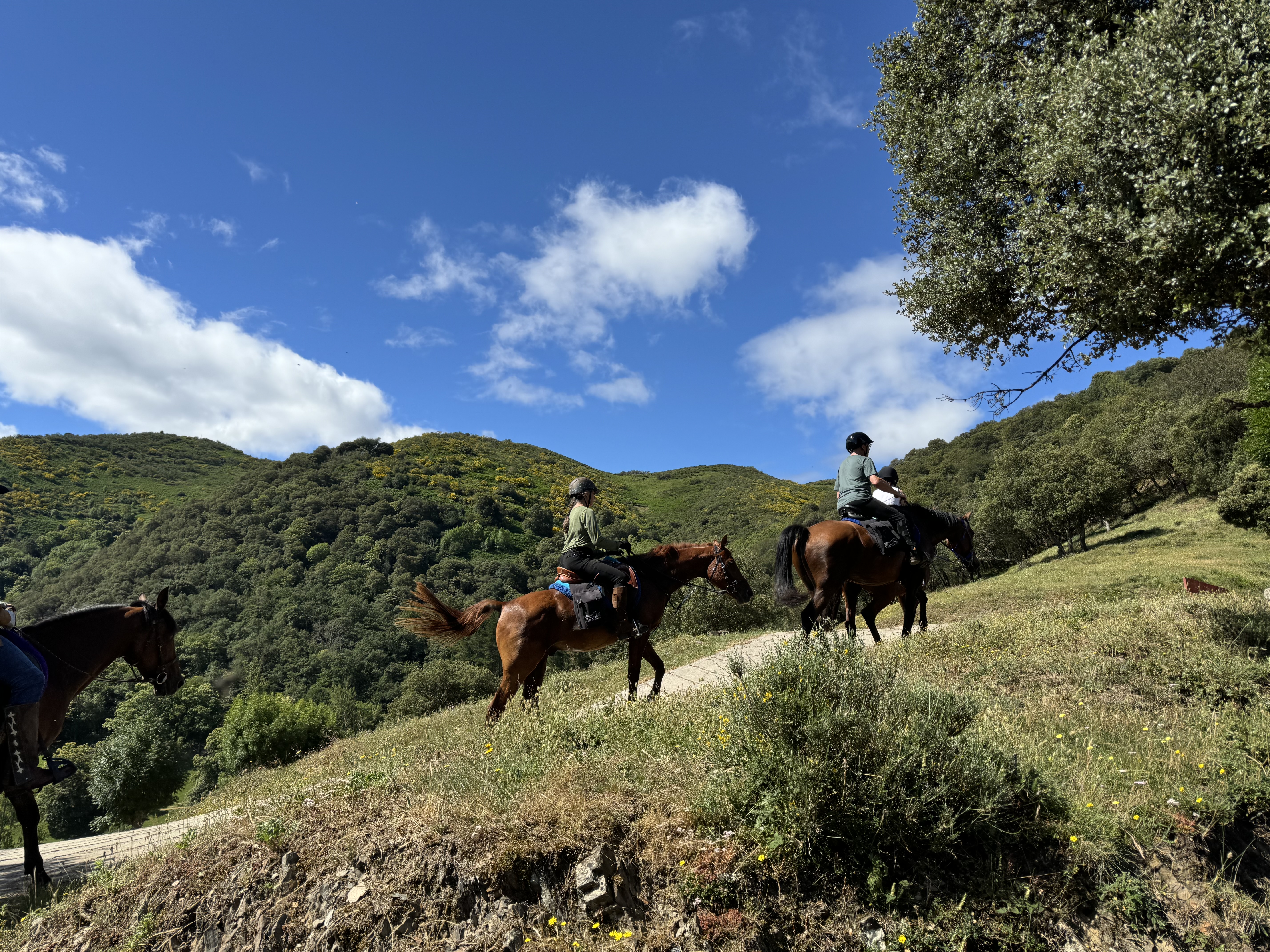 Tijdens deze paardrijvakantie wordt gereden op Hispano-Arabische, CDE-, Anglo-Arabische en Spaanse paarden, en enkele Spaanse kruisingen. De paarden zijn uitgerust met Engelse zadels. Elk zadel beschikt over zadeltassen, waarin dagelijks een waterfles en een regenponcho kunnen worden meegenomen tijdens de ritten. De paardrijorganisatie voorziet een regenponcho en het benodigde materiaal.