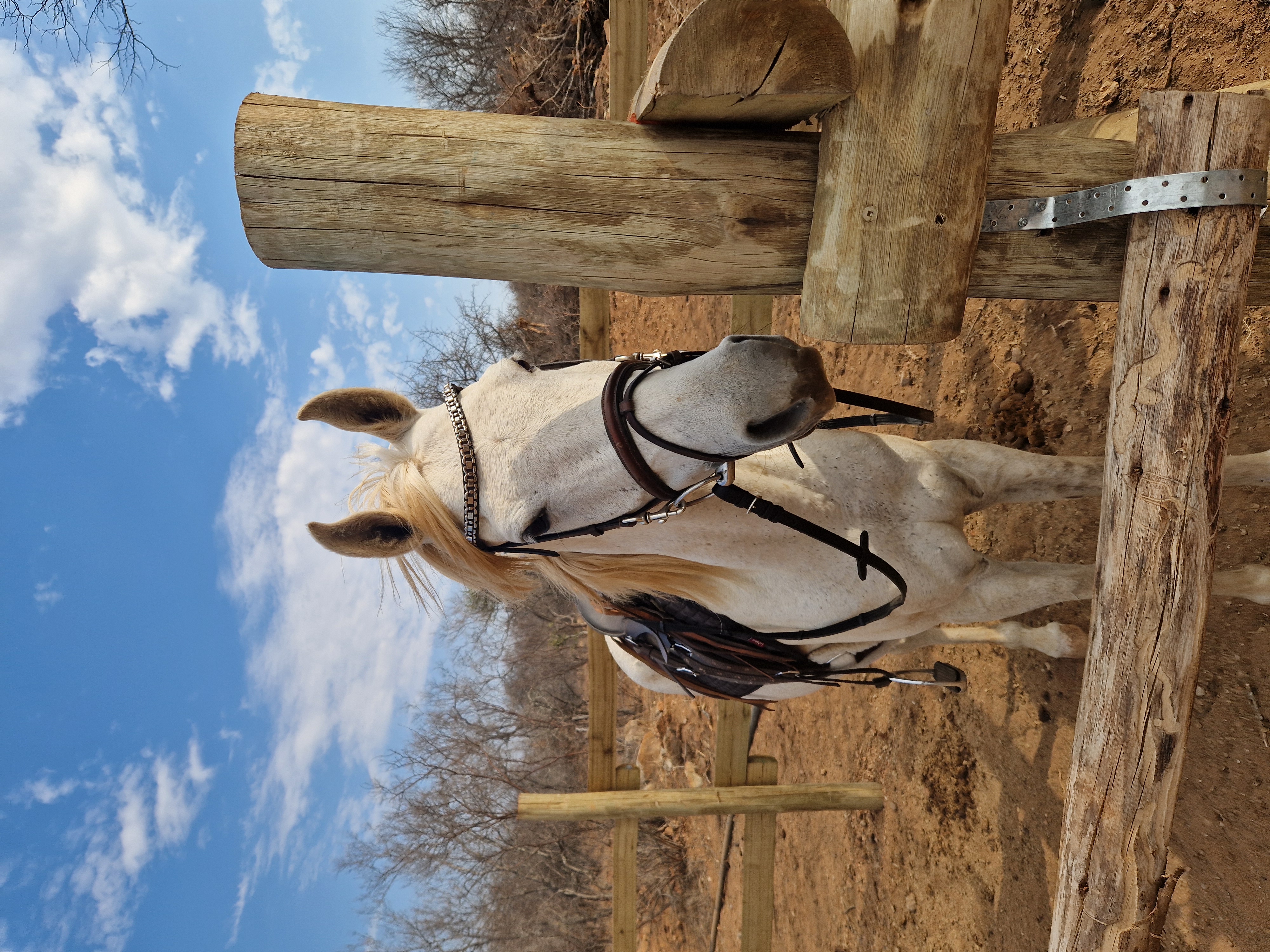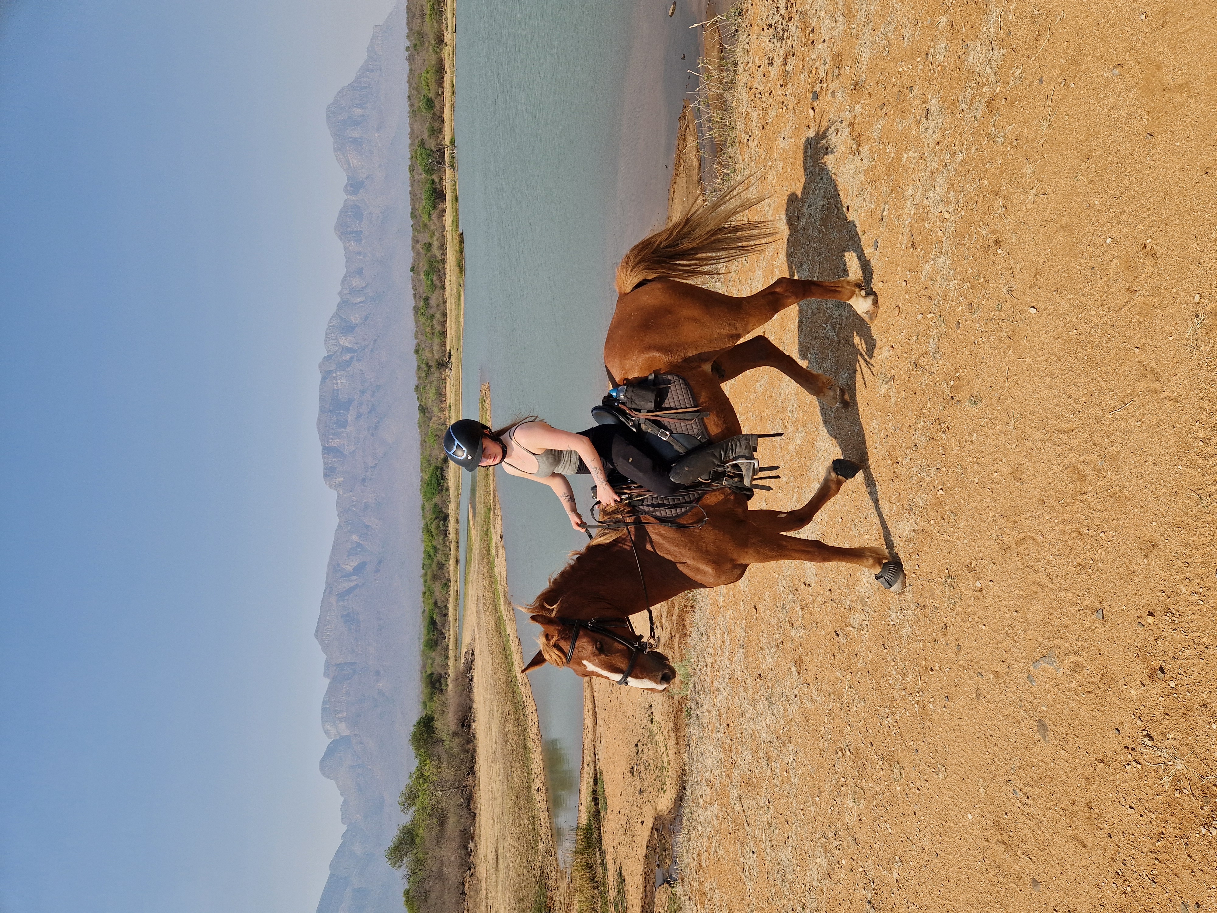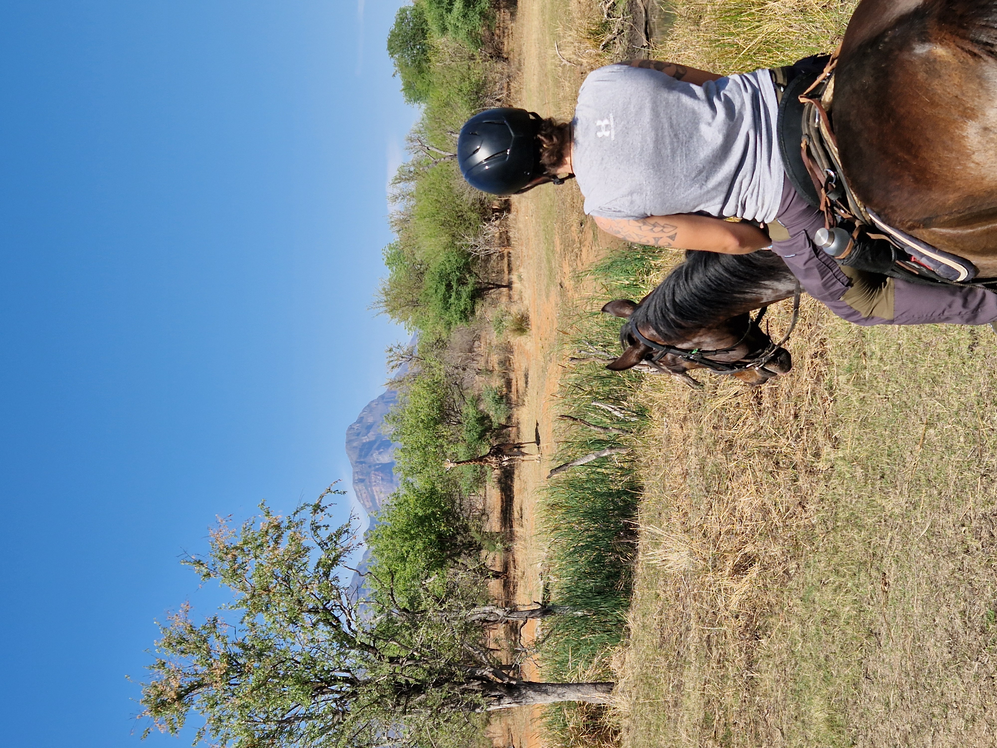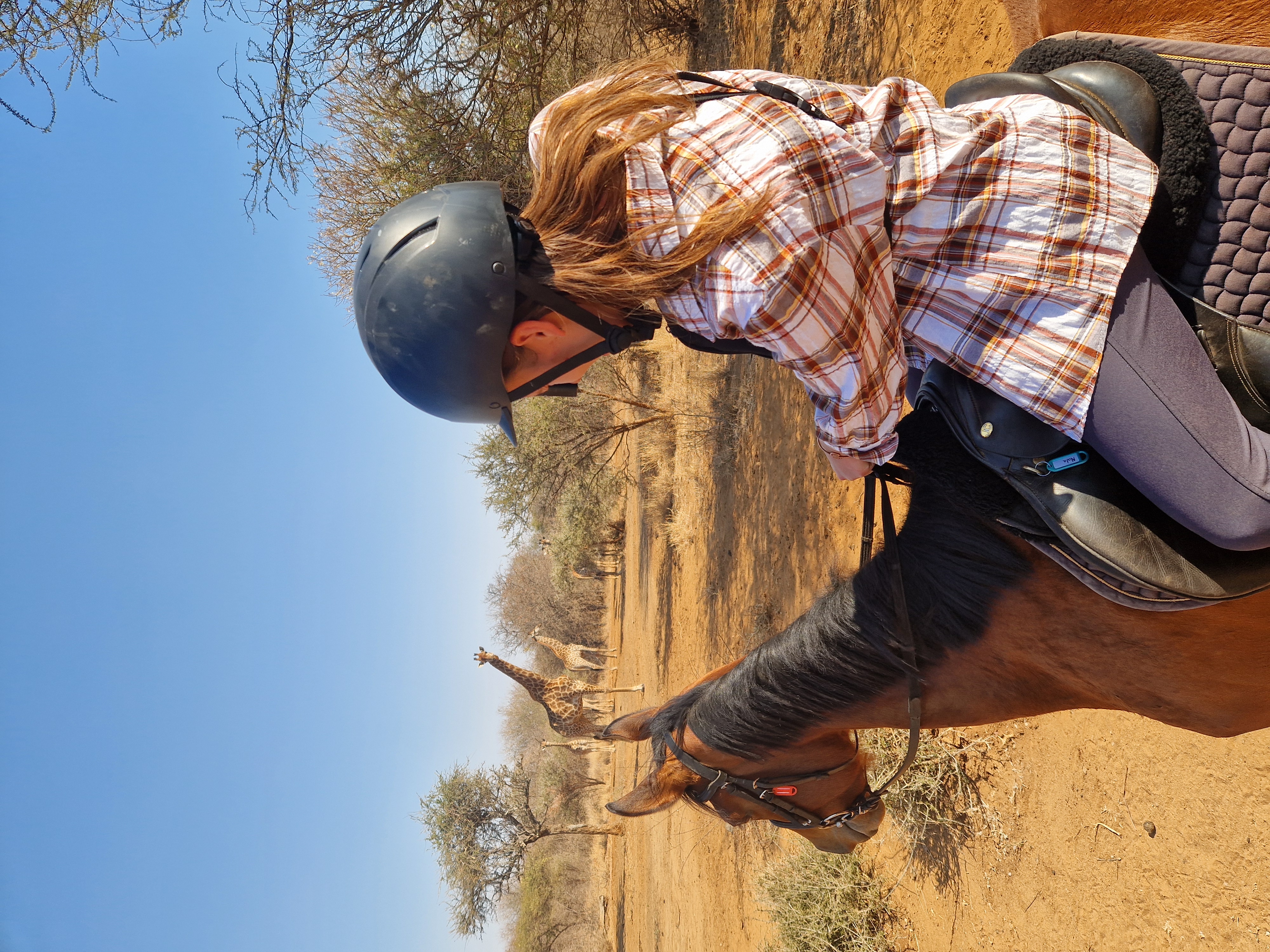 Je rijdt dagelijks ongeveer 3 tot 5 uur, afhankelijk van het weer, door een zeer afwisselend landschap van mooie zandpaden, open savannes, rivieroevers en boomgaarden met citrusbomen. Onderweg zie je de wilde dieren, waaronder giraffen, zebra's, kudu's, struisvogels, gnoes, waterbokken, nyala, impala, wilde zwijnen, nijlpaarden en krokodillen. Er wordt gereden op zowel het eigen terrein als de omliggende terreinen, in totaal zo'n 1000 hectare aan natuur. Meestal maak je een ochtendrit van circa drie uur en een kortere rit van ongeveer twee uur in de middag, met volop mogelijkheden om te galopperen. Je zadelt en verzorgt je paard zelf voor en na de rit. Tijdens je verblijf rijd je op verschillende paarden. Eén keer per week wordt er een rit georganiseerd die wordt afgesloten met een drankje bij zonsondergang.